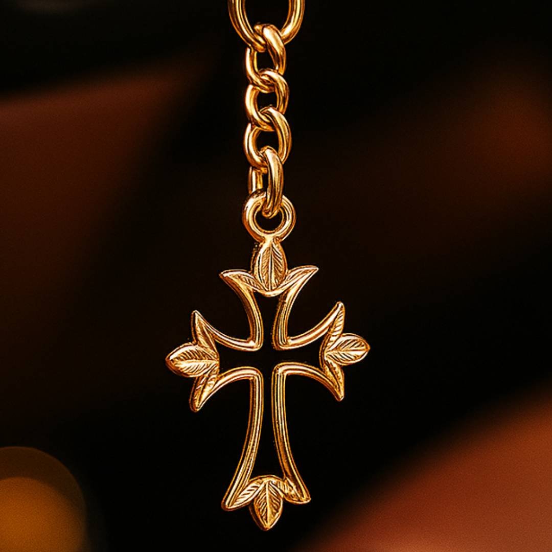 Elita Decorative Brass Cross Keychain with Chain Link and Carabiner Clasp With Gold Plated Finish