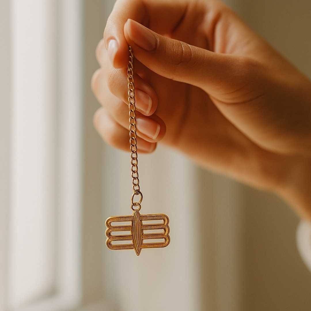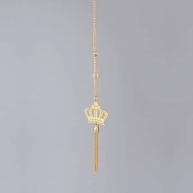 Elita Gold-Plated Finish in Brass Celestial Indian Crown Car Hanging, Chain Link Design