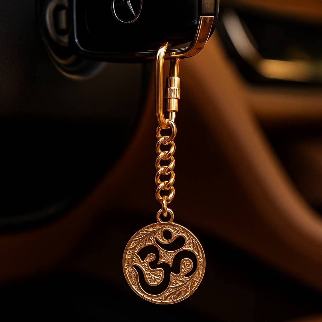 Elita Gold-Plated Finish Om Symbol Keychain, Decorative Chain Link, Religious Charm Pendant