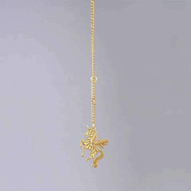 Elita Gold-Plated Finish in Brass Unicorn Car Hanging, Chain Link Design
