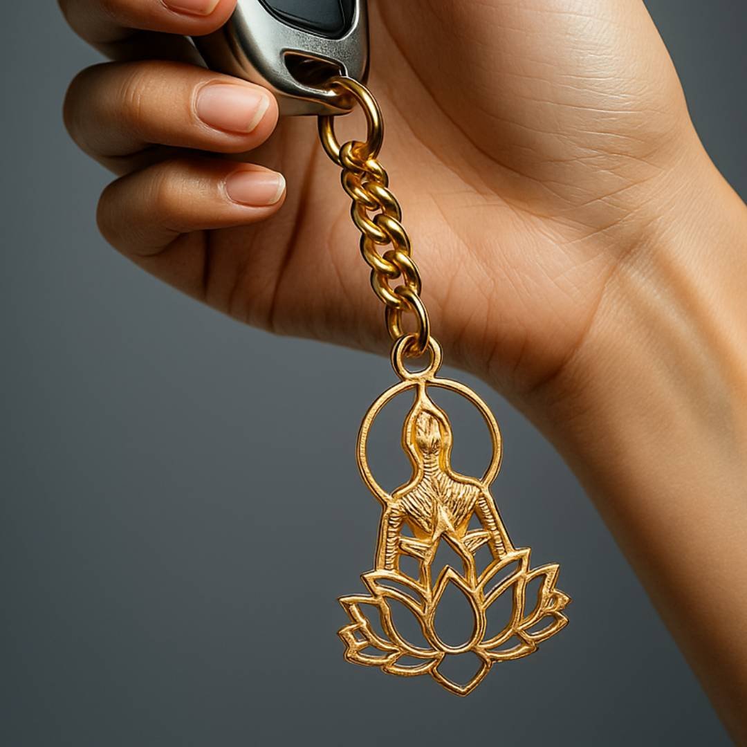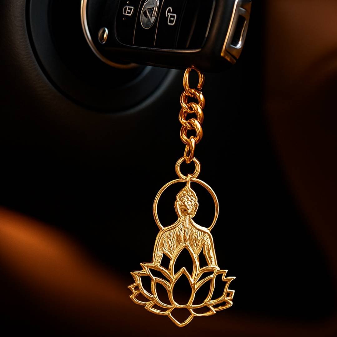 Elita Buddha Lotus Meditation Keychain, Gold-Plated Finish With Brass, Spiritual Charm Accessory