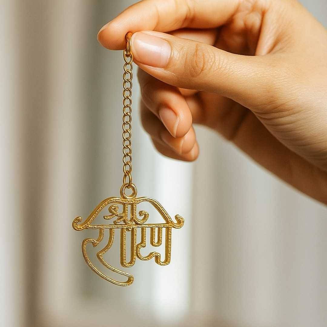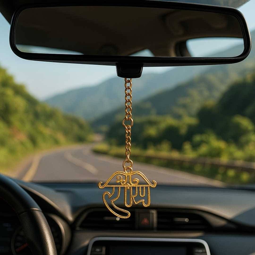 Elita Decorative Shubh Hindi Text Shri Ram Car Rear View Mirror Hanging Charm, Gold-Plated