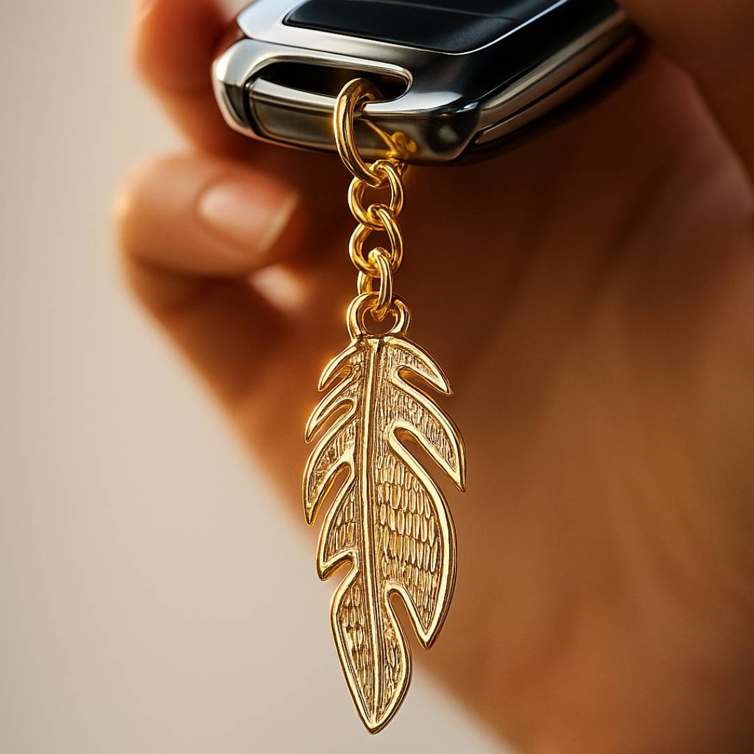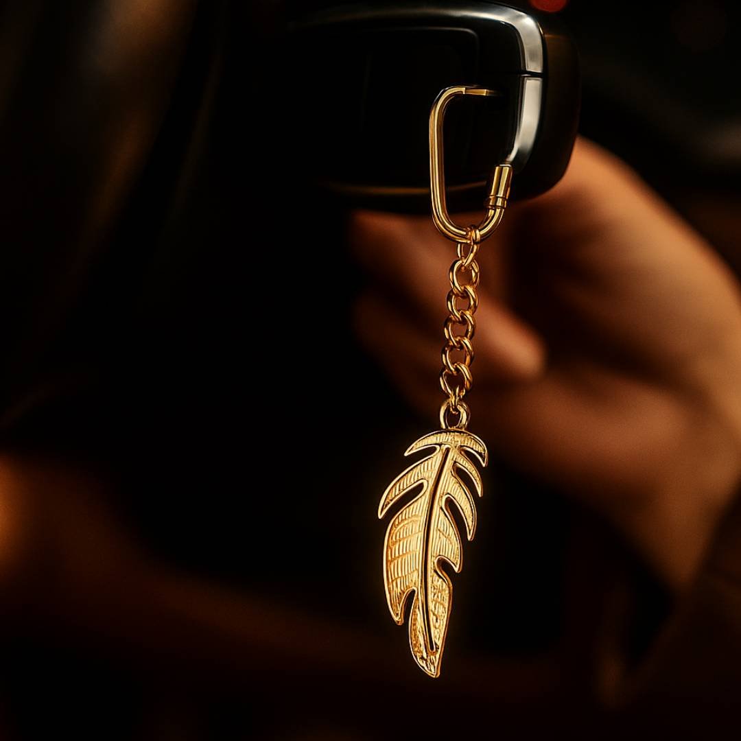 Elita Brass Gold-Plated Finsh Leaf Keychain, Decorative Chain Link Charm, Vintage Style, Brass