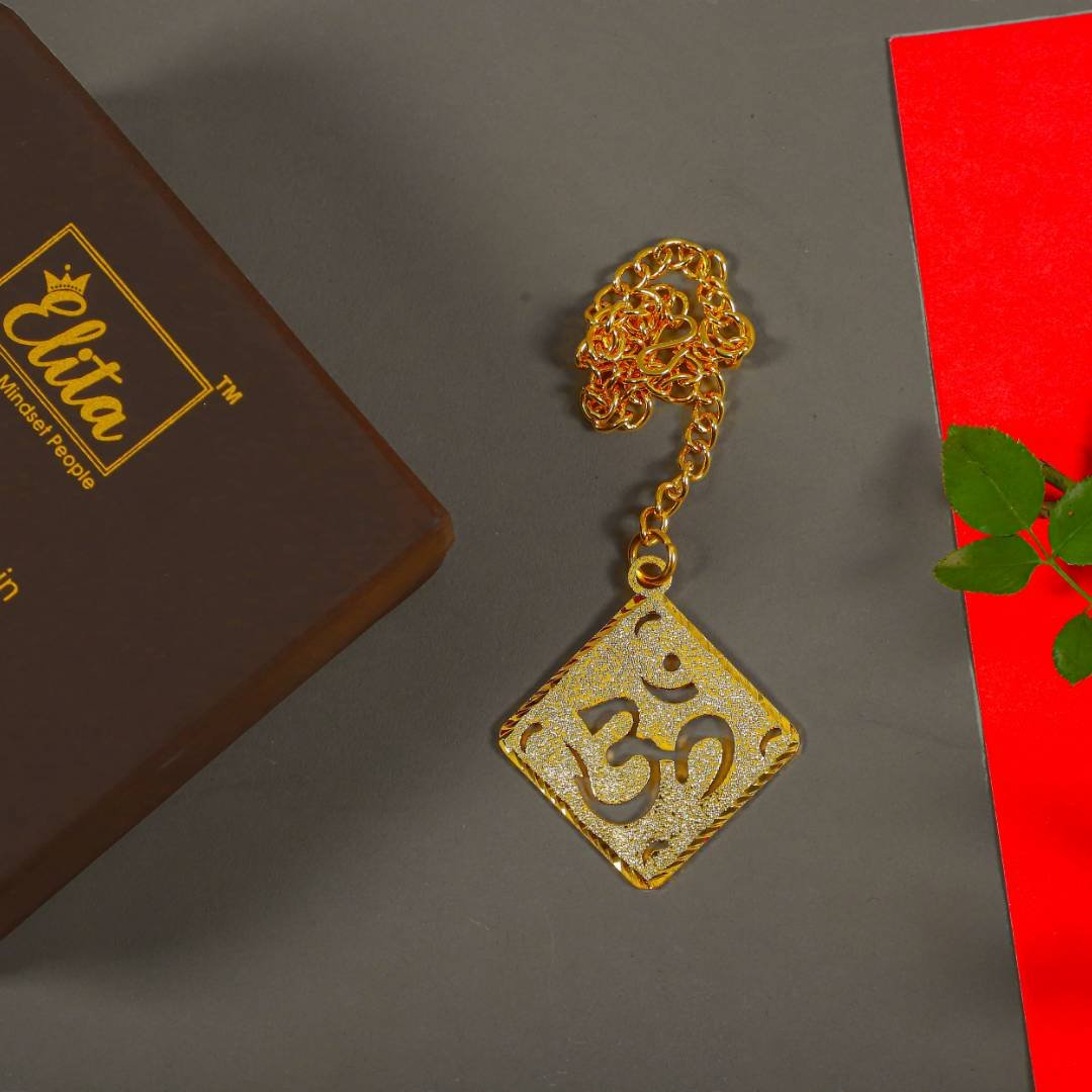 Elita Om Car Hanging Charm in Brass with Gold Plated Finish