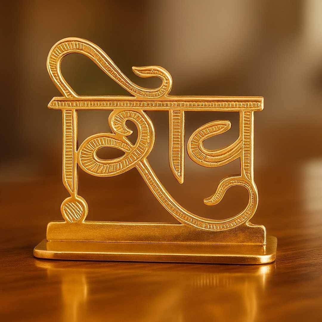 Elita Shiv Hindi Text Car Dashboard Decorative Religious Ornament, Gold Plated Finish in Brass