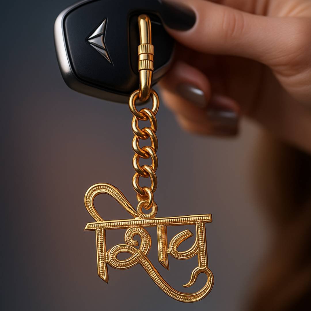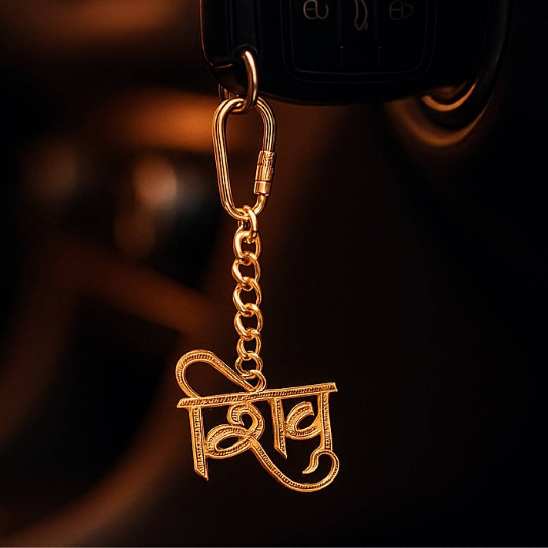 Elita Gold-Plated Finish Brass Shiv Charm Keychain with Carabiner Clip, Decorative Chain Link Design