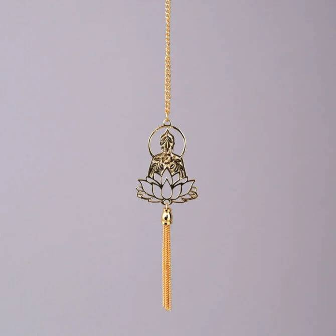Elita Buddha Car Rearview Mirror Hanging Charm, Gold-Tone Chain, Decorative Car Accessory