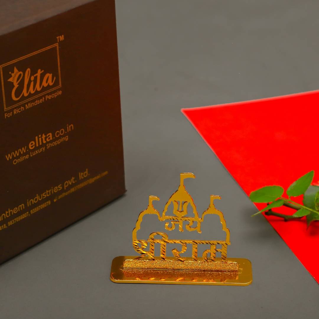 Elita Jai Shree Ram Mandir Car Hanging in Brass with Gold Plated Finish