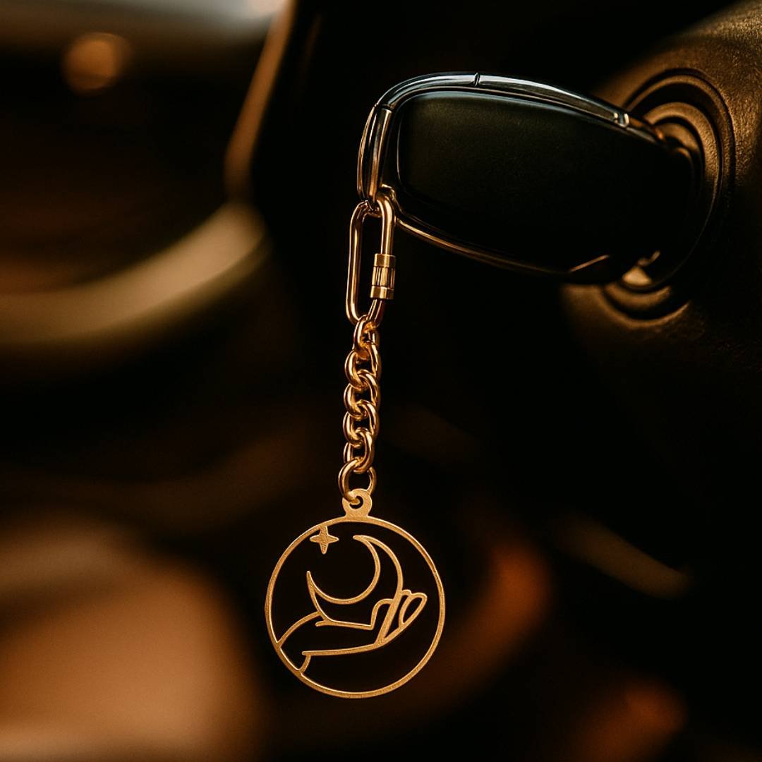 Elita Om Symbol Keychain, Gold Plated Finish Chain with Religious Charm, Spiritual Accessory