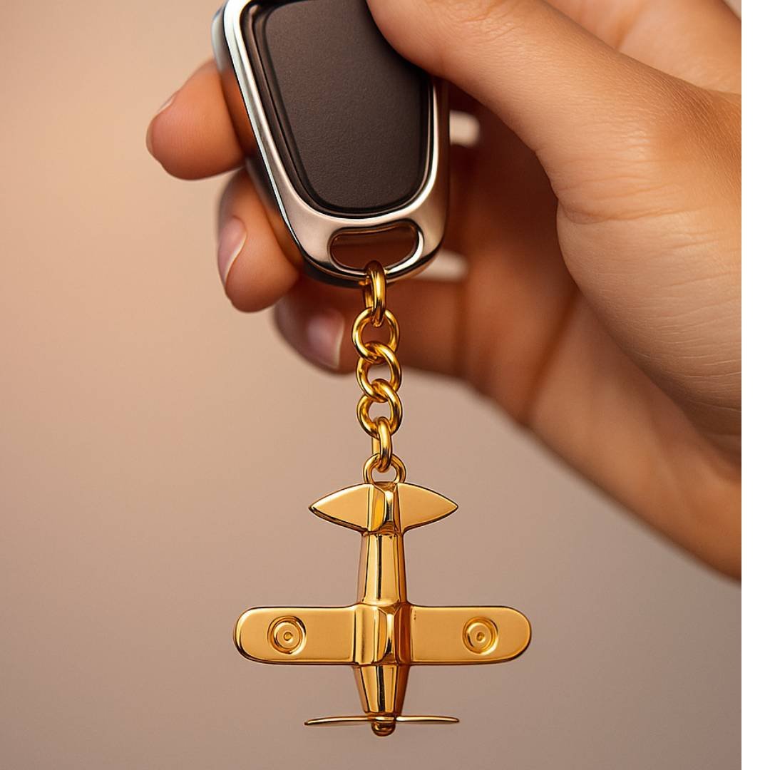 Elita Vintage Style Airplane Keychain, Gold-Tone, Decorative Aircraft Key Ring