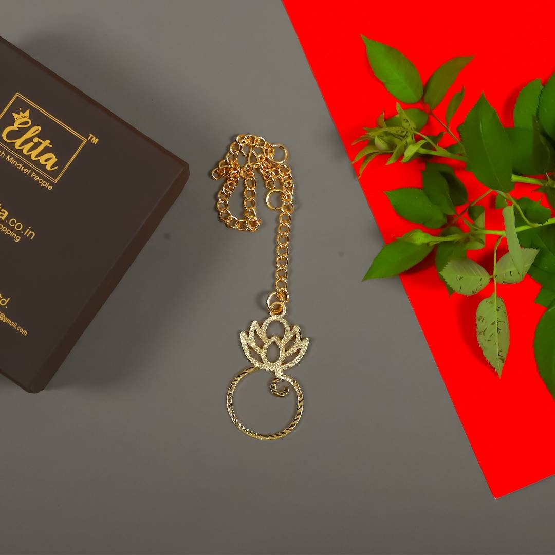 Elita Gold-Plated Finish in Brass Celestial Indian Crown Car Hanging, Chain Link Design
