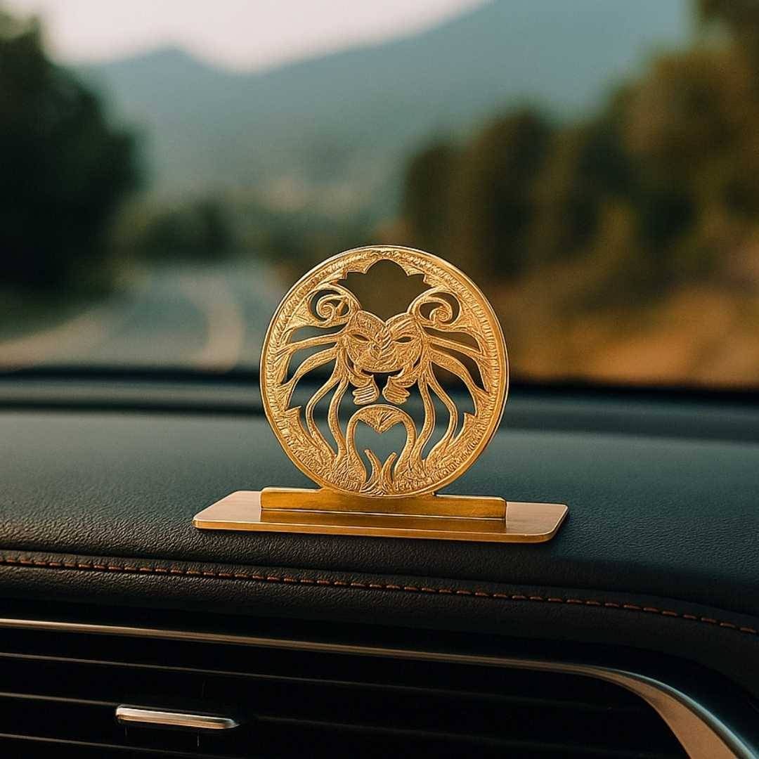 Elita Double Lion Car Dashboard Ornament Gold-Plated Finish in Brass