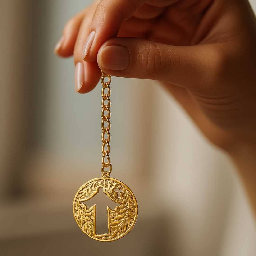 Elita Gold-Plated Finish in Brass Celestial Indian Crown Car Hanging, Chain Link Design