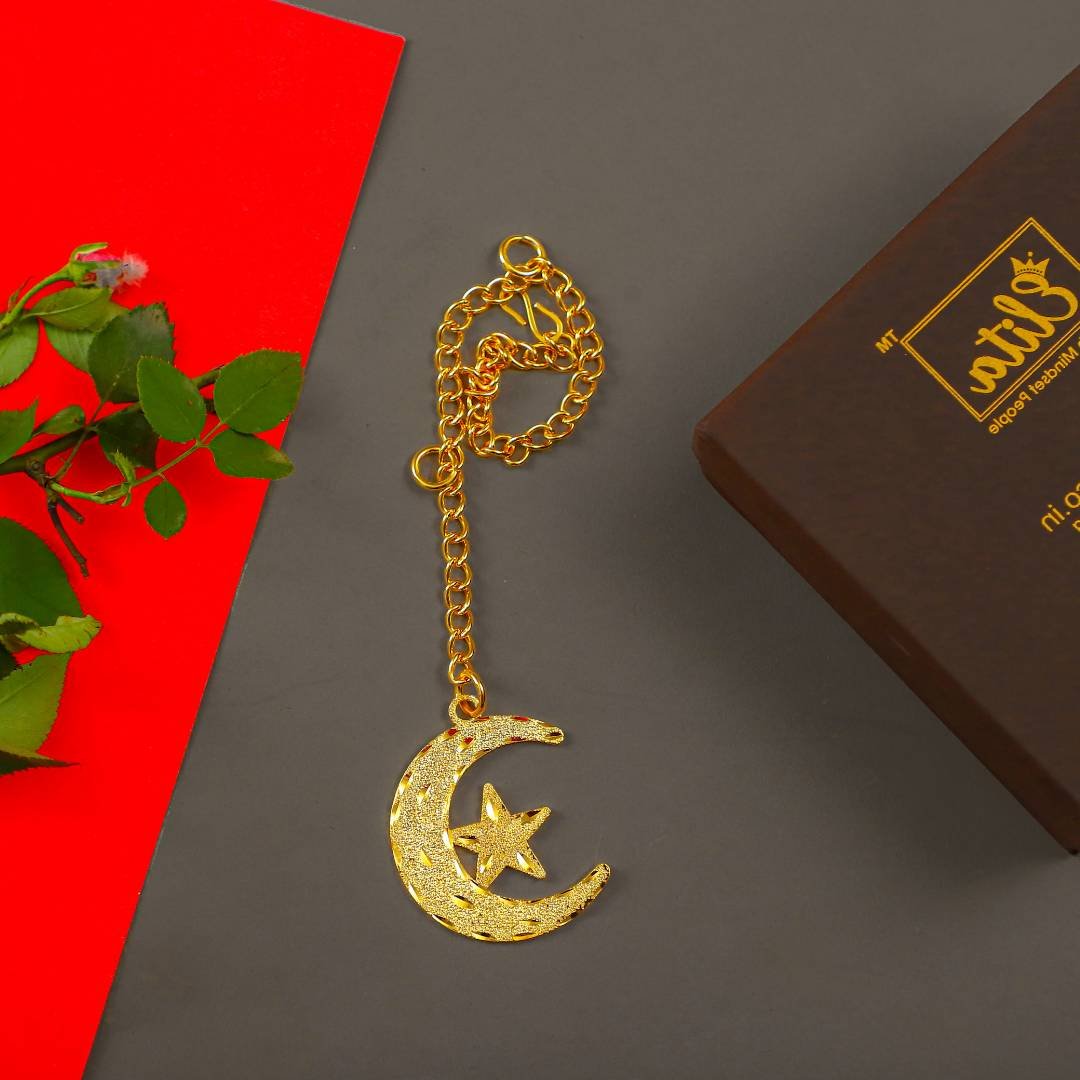 Elita Moon Chand Sitara Car Hanging in Brass with Gold Plated, Islamic Religious Gifts
