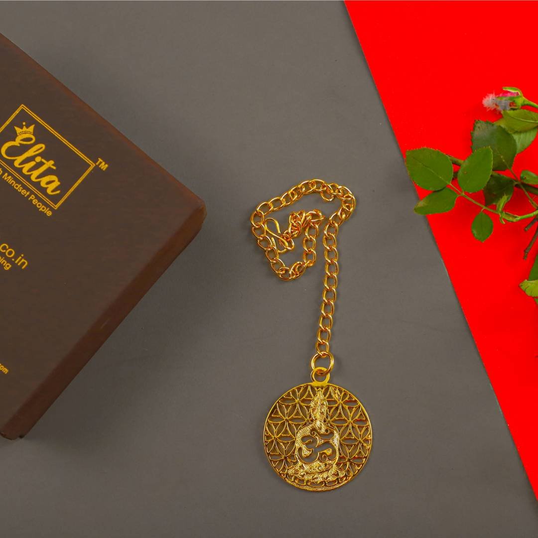 Elita Buddha Design with om Car Hanging Brass with Gold Plated Finish