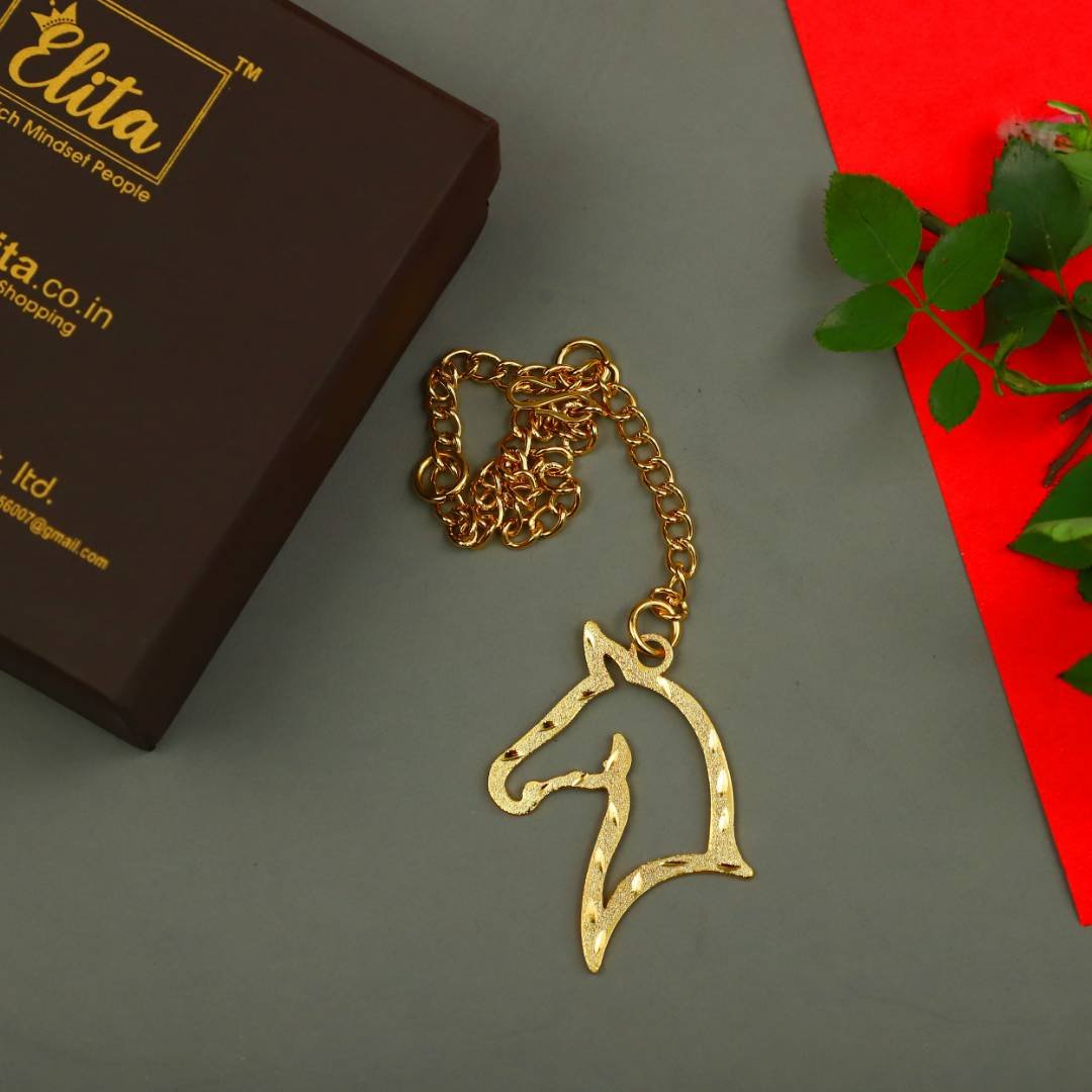 Elita Gold Horse Car Charm, Rearview Mirror Hanging Pendant, Gold-Plated Finish in Brass
