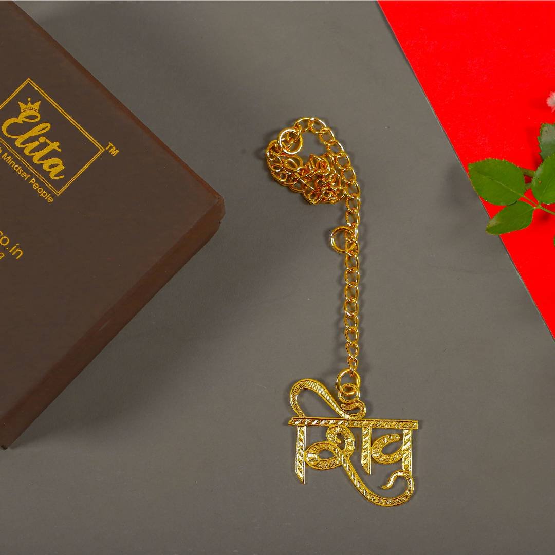 Elita Gold-Plated Finish in Brass Celestial Indian Crown Car Hanging, Chain Link Design