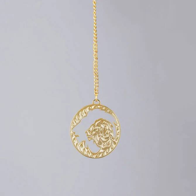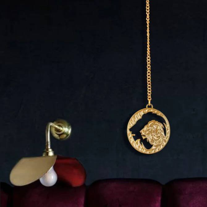 Elita Gold-Plated Finish in Brass Singal Lion Car Hanging, Chain Link Design